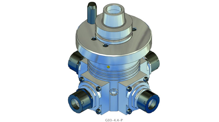 G03 系列的角頭具有多達四個(gè)加工主軸。所有刀架的主軸旋轉方向始終與驅動(dòng)器的旋轉方向相同。驅動(dòng)速度以 1:1.55 的比例傳遞到刀架。間歇運行時(shí)主軸最高轉速可達 18,000 rpm。