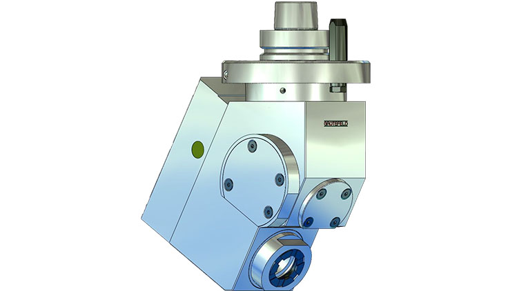 W56 角銑頭配備加工主軸,可在向上 15° 至最大向下 31° 的范圍內以固定角度布置。之后無(wú)法更改指定的角度。主軸的旋轉方向與驅動(dòng)器的旋轉方向相反。驅動(dòng)速度以 1:2.06 的比例傳輸到刀架。間歇運行時(shí)主軸最高轉速可達 16,000 rpm。