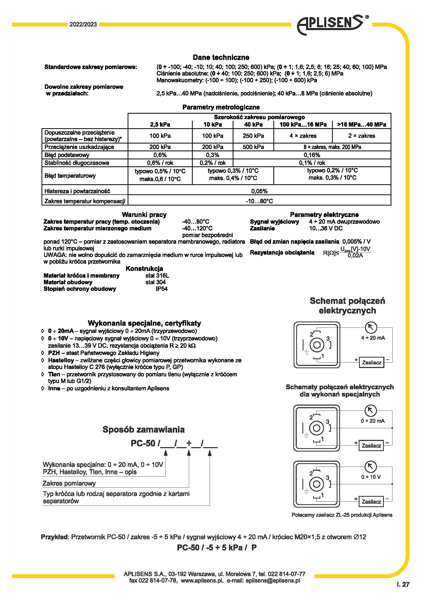 從0 ÷ 2.5 kPa到0 ÷ 40 MPa的任何測量范圍輸出信號4-20mA或0-20mA或0-10V